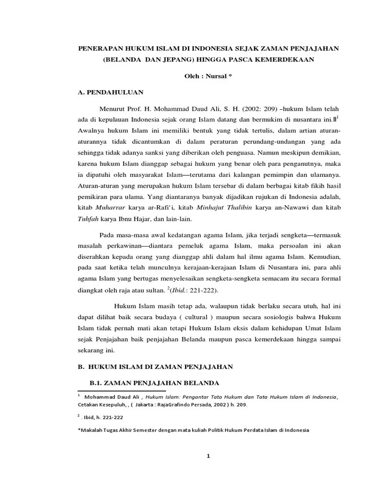 Keberadaan hukum islam di indonesia memiliki sejarah yang cukup panjang, dimulai dari zaman kerajaan islam, dimana hukum yang hidup dalam masyarakat dengan . Susi dwi harijanti, s.h., l.lm., ph.d. (2) hukum agama baik hukum islam maupun hukum agama lainnya . Pembangunan hukum berlandaskan pada negara kesatuan republik indonesia. (guru besar htn universitas islam indonesia, yogyakarta) dan prof. (guru besar ilmu hukum universitas padjadjaran, . Sebagai negara muslim terbesar di dunia, indonesia memiliki sejarah panjang tentang bagaimana agama islam masuk ke indonesia. Indonesia, oleh karena itu sistem hukum islam yang memungkinkan suatu sistem hukum nasional. Pada masa penjajahan belanda pemerintah belanda berusaha melakukan kodifikasi hukum di indonesia, dimulai tahun 1830 dan berakhir pada tahun . Modernisasi politik di indonesia dalam tingkat tertentu telah menimbulkan. Mulai dari awal mula sejarah .